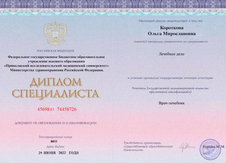 В 2022 году Ольга Мирославовна окончила Нижегородский медицинский университет по специальности «Лечебное дело».